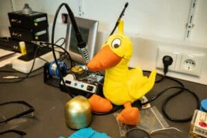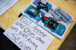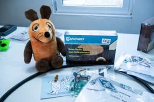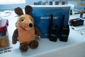 At the end, each child received a gift set from Mouse Day, including a mouse pin, a radio kit and a small soldering set. The fastest trackers in the fox hunt received a special first prize: A radio set (PMR) from Baofeng incl. charging cradles – ideal for getting started in free radio communication – without exam and amateur radio licence.